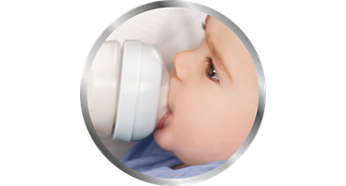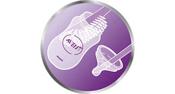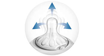 Широкият биберон с формата на гърда помага за естествено засмукване, подобно на това при кърменето, и улеснява бебето, когато комбинирате кърмене и хранене от бутилка.