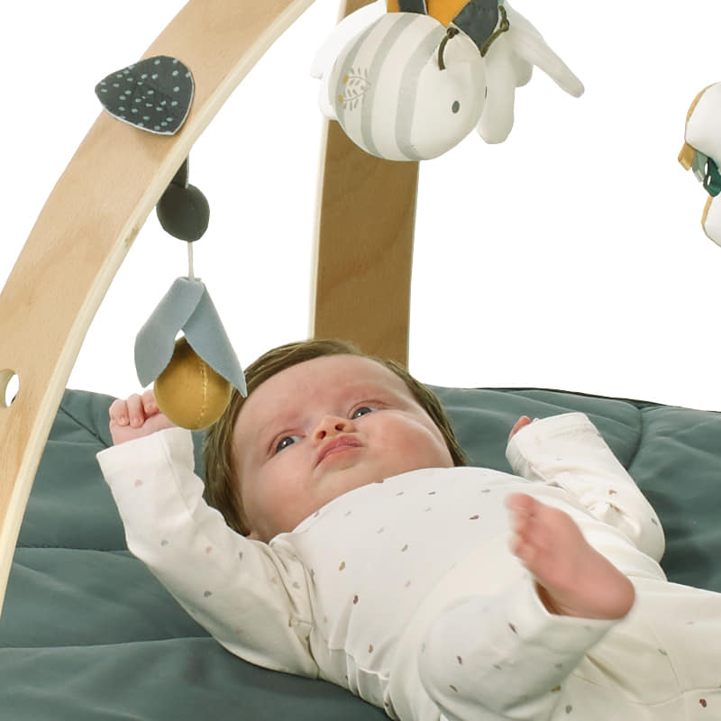 Вашето бебе може да се забавлява и едновременно да стимулира сетивата си върху тази активна гимнастика. Благодарение на меките и деликатни материали, тя създава безопасно място за игра, а дизайнът ѝ позволява да се сгъва за лесно съхранение или транспорт.