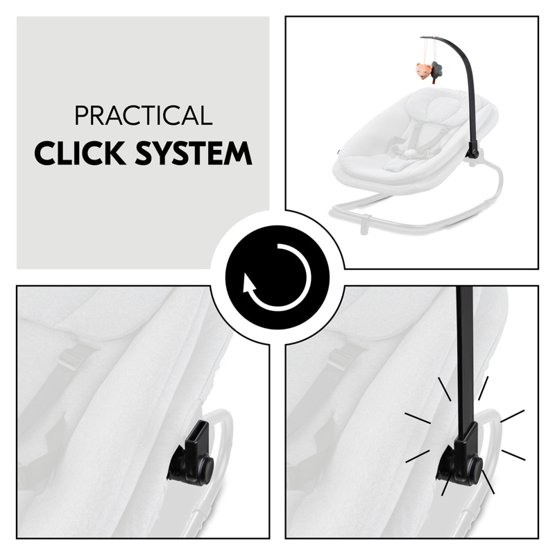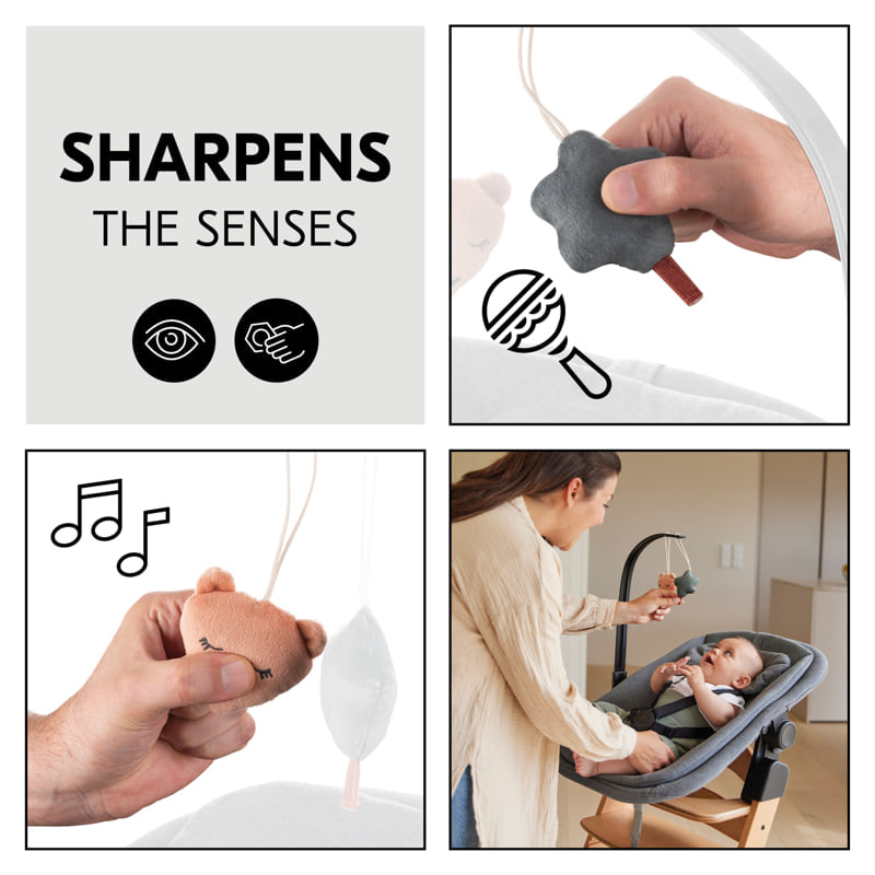 С арката на hauck Highchair Bouncer вашето бебе може да открива света около себе си в позната обстановка. Звучното мече и дрънкащото дърво стимулират двигателните умения чрез игра.