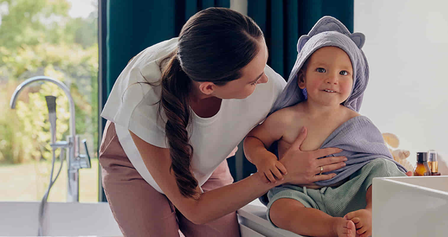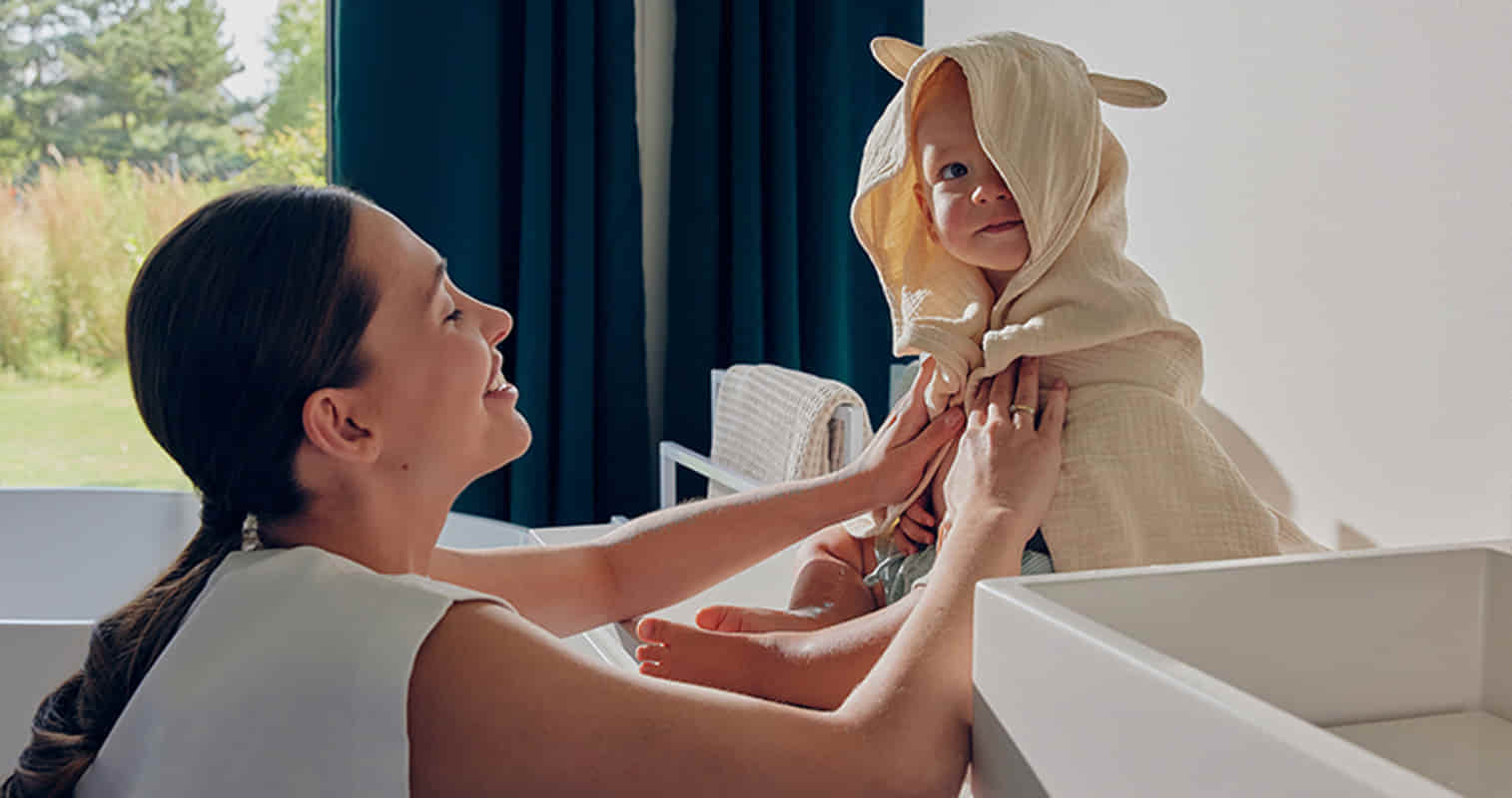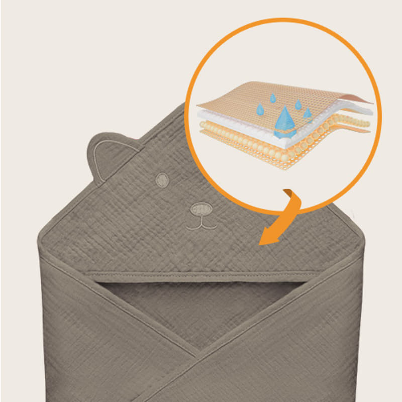 Материята ефективно попива влагата, оставяйки кожата на детето суха и защитена след къпане.
