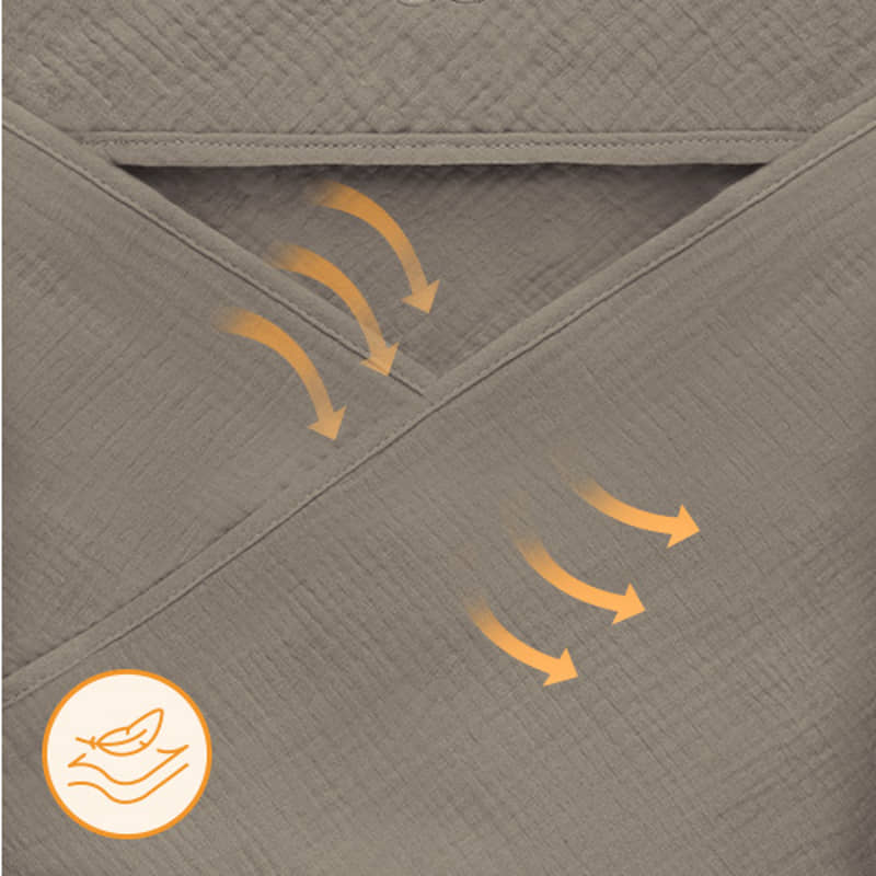Дори след гореща баня, хавлията осигурява термален комфорт, като позволява на кожата на детето да диша свободно.