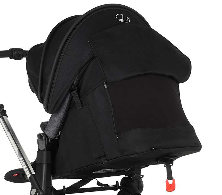 • Съвместим с колички Jané чрез системата Jané Pro-Fix. Има ремъци за допълнително закрепване към шасито.