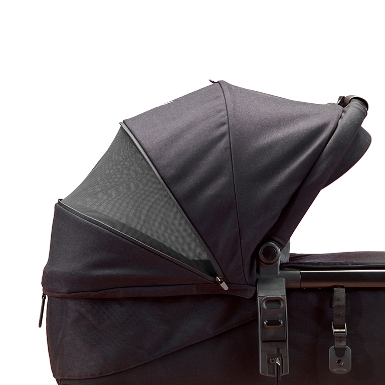 • Разтегателен сенник с 60% рециклирани тъкани, със слънцезащита UPF50, водоотблъскваща дишаща материя, спираща вятъра.