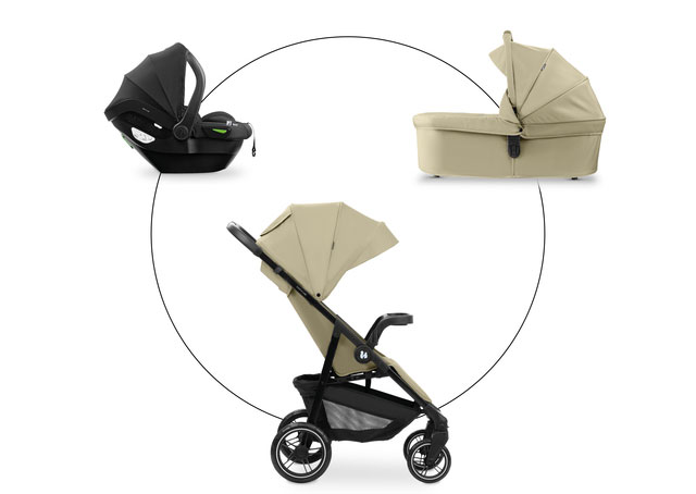 С елегантния комплект 3 в 1, включващ кош за новородено, седалка и столче за кола, сте напълно подготвени за всяко приключение – голямо или малко. Включени са подходящи адаптери за коша и столчето, които ви позволяват лесно да превърнете количката в практична система за пътуване – само с едно движение.