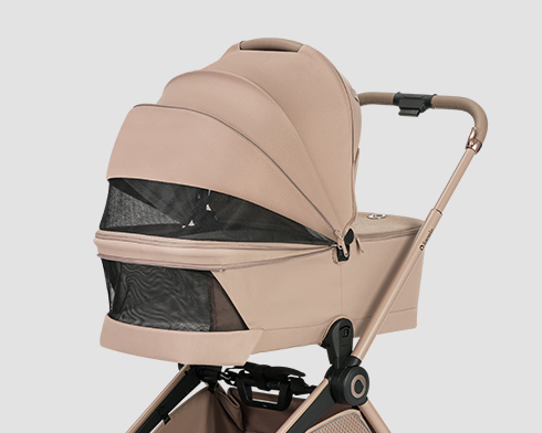 Кошът съчетава комфорт и практичност. Пълноразмерното вътрешно пространство осигурява удобство през първите месеци, а възможността за компактно сгъване – заедно с рамката – улеснява ежедневната употреба и транспортиране. Сертифицираната дръжка позволява безопасно носене на бебето.