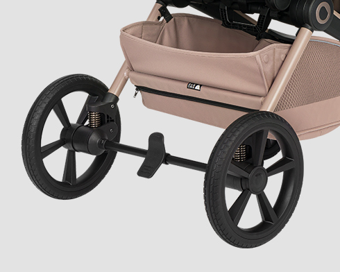 Независимо дали се движите по равен тротоар или неравен терен, въртящите се на 360° предни колела осигуряват отлична маневреност. PU колелата са издръжливи и не изискват поддръжка. Централната спирачка повишава безопасността, а окачването гарантира стабилно и плавно движение.