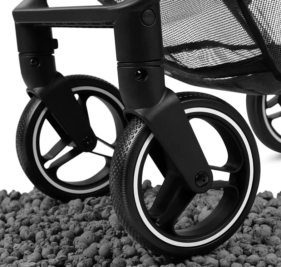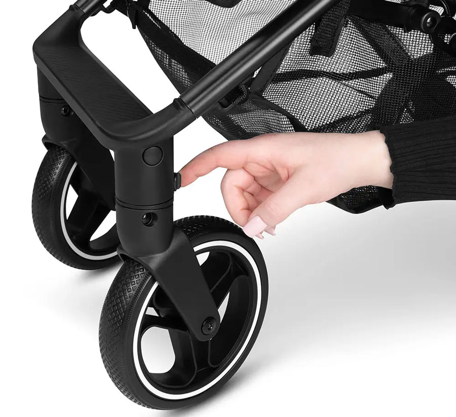 С въртящите се предни колела можете да навигирате без усилие през лабиринта на града. За неравни пътеки просто заключете колелата и се насладете на максимална стабилност. Идеален за гъвкави градски изследователи и тихи разходки в провинцията.
