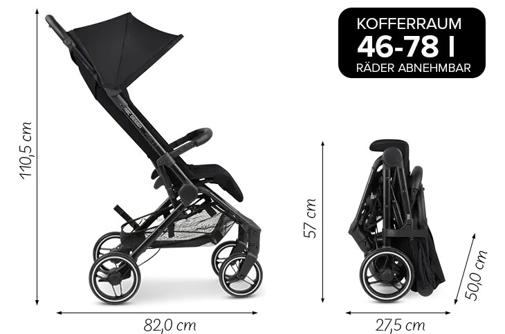 Регулируемата облегалка и поставка за крачета могат да бъдат персонализирани според нуждите на вашето дете. Независимо дали седите изправени, любопитно изследвайки заобикалящата среда или в спокойна легнала позиция - вашето мъниче винаги ще се чувства комфортно. Изключително големият сенник със защитен фактор UPF 50+ надеждно предпазва вашето дете от слънчевите лъчи, докато то се наслаждава пълноценно на разходките си.