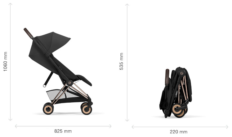 Размери на количка Coya - сгъната (най-компактна):