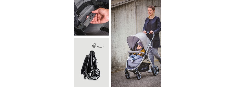 Бързо и лесно сгъване. Lift Up 4 може да се сгъва за секунди и само с една ръка. Когато е сгъната можете да я пренесете лесно чрез дръжката за носене. По този начин ще бъде много удобно когато изкачвате стълби- едната ви ръка ще е винаги свободна за да вземете детето. Lift Up 4 може да се побере дори и в най-малкият багажник на автомобил.