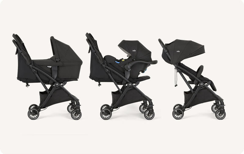 Три варианта на използване в една количка при комбиниране с бебешко столче за кола или кош за новородено