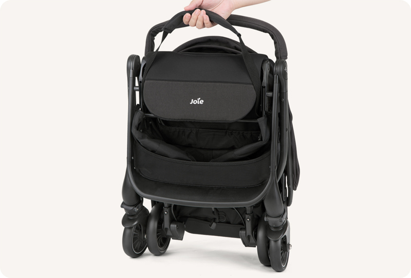 Леката конструкция (6 kg) и вградената презрамка позволяват лесно повдигане и съхранение. Компактната, но здрава рамка улеснява транспортирането на детето и всички необходими вещи.
