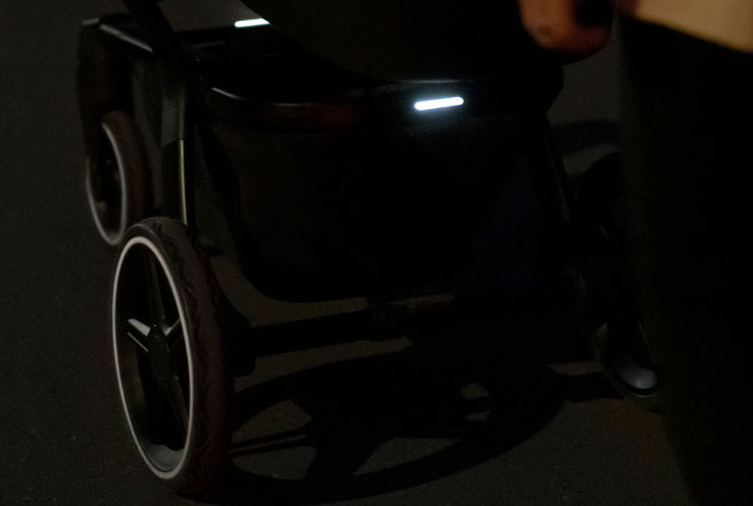 В шасито на количката са вградени LED светлини, които ще гарантират, че сте добре видими и в безопасност по здрач.