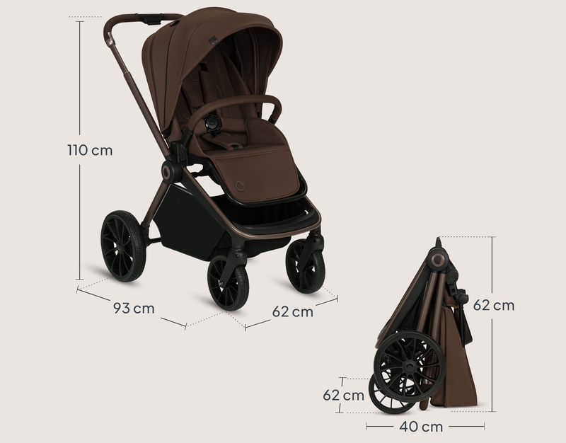 От градски разходки до офроуд екскурзии, универсалните колела за всякакъв терен на количката са подготвени за всяко приключение, дъжд или слънце. Количката предлага щедро пространство от 90 см, идеално за уютна дрямка на детето! Лекият дизайн на комплекта – само 10,9 кг – гарантира лесна употреба в ежедневните дейности.