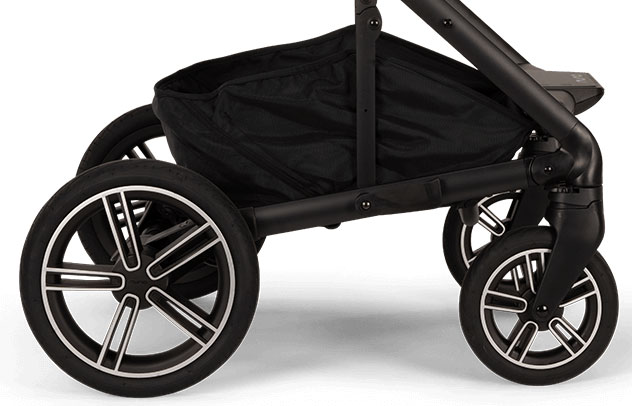 Компактната прибираща се ос Compact fold-away axle™ сгъва количката MIXX next в удобен и компактен пакет – идеален при преминаване от разходка към съхранение.