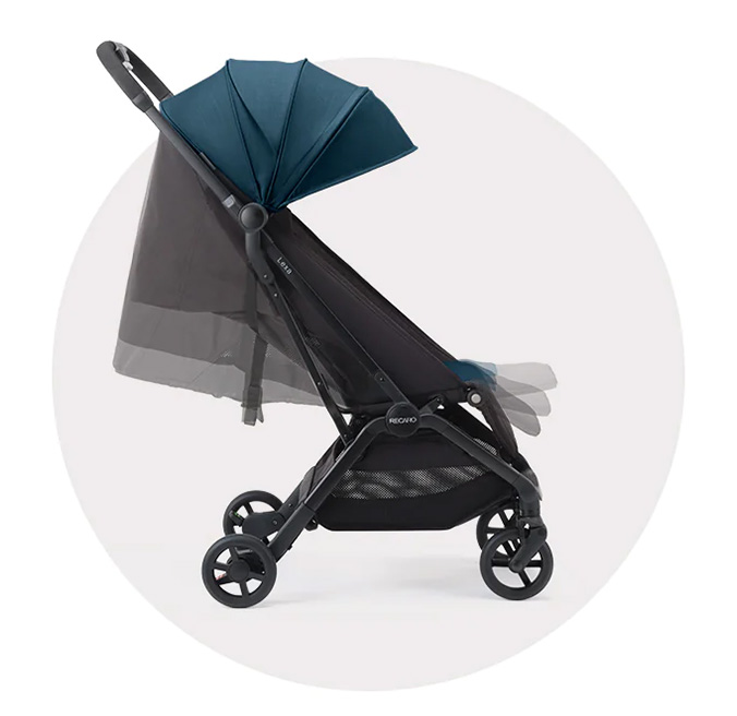 • Дълбок сенник с възможност за сгъване и прозорче с капаче (с мрежа против насекоми). Подходящо за по-добра циркулация на въздуха в топлите дни, както и за наблюдение на детето.