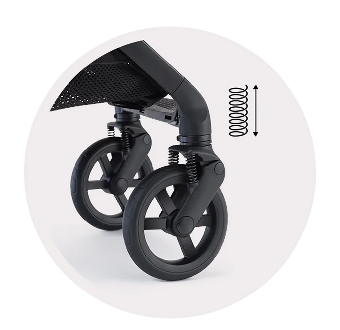 Моделът е с окачване и въртящи се настрани предни колела, което осигурява гладко и приятно возене.