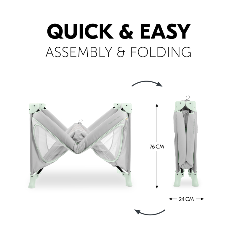 Търсите пътуващо легло, което се сглобява особено бързо? Благодарение на специалния механизъм на Dream N Play Plus, това става лесно – можете да го разгънете и сгънете без усилие.
