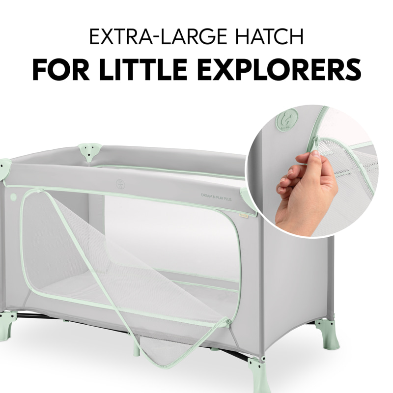 Dream N Play Plus разполага с голям отвор, който може да се отвори отвън. Това позволява на детето ви самостоятелно да излиза от леглото – и да се връща обратно!