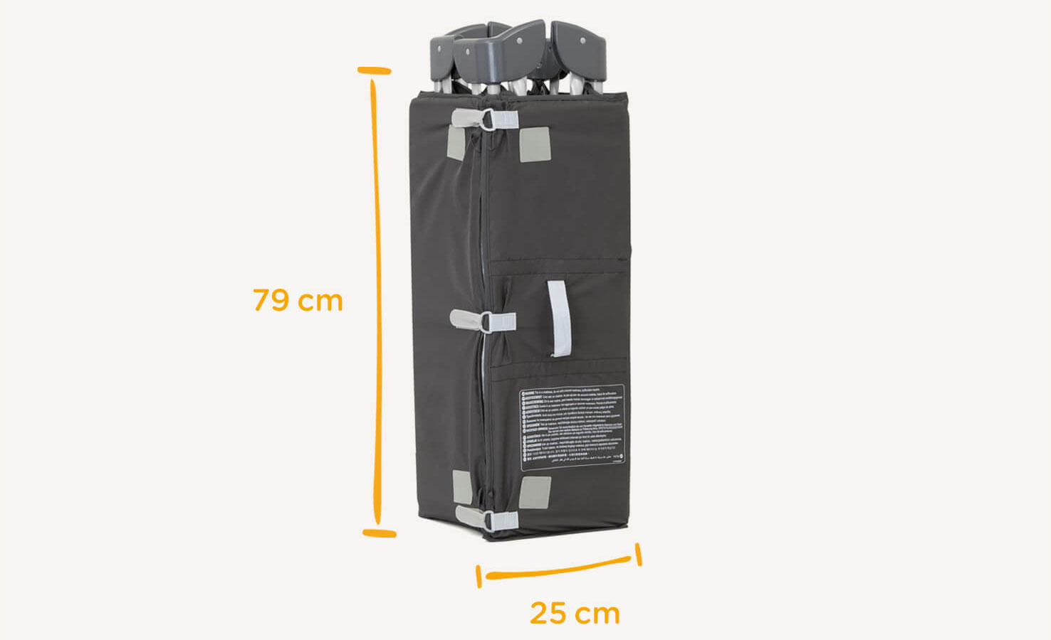 Пътуването и съхранението са лесни с кошара, която се прибира в компактна транспортна чанта, така че да можете да я транспортирате и съхранявате удобно