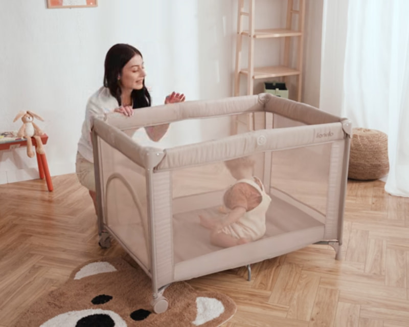 Мрежестите страни осигуряват постоянна циркулация на въздуха и пълна видимост. Детето се чувства комфортно и защитено, а вие можете да го наблюдавате по всяко време – независимо дали спи или играе.