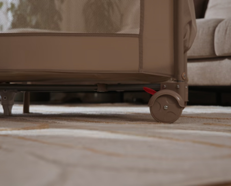 Независимо дали сте в хола, кухнята или на терасата – Ellen се придвижва лесно с вас. Благодарение на 2 колелца със спирачки кошарата може да се мести без усилие.
