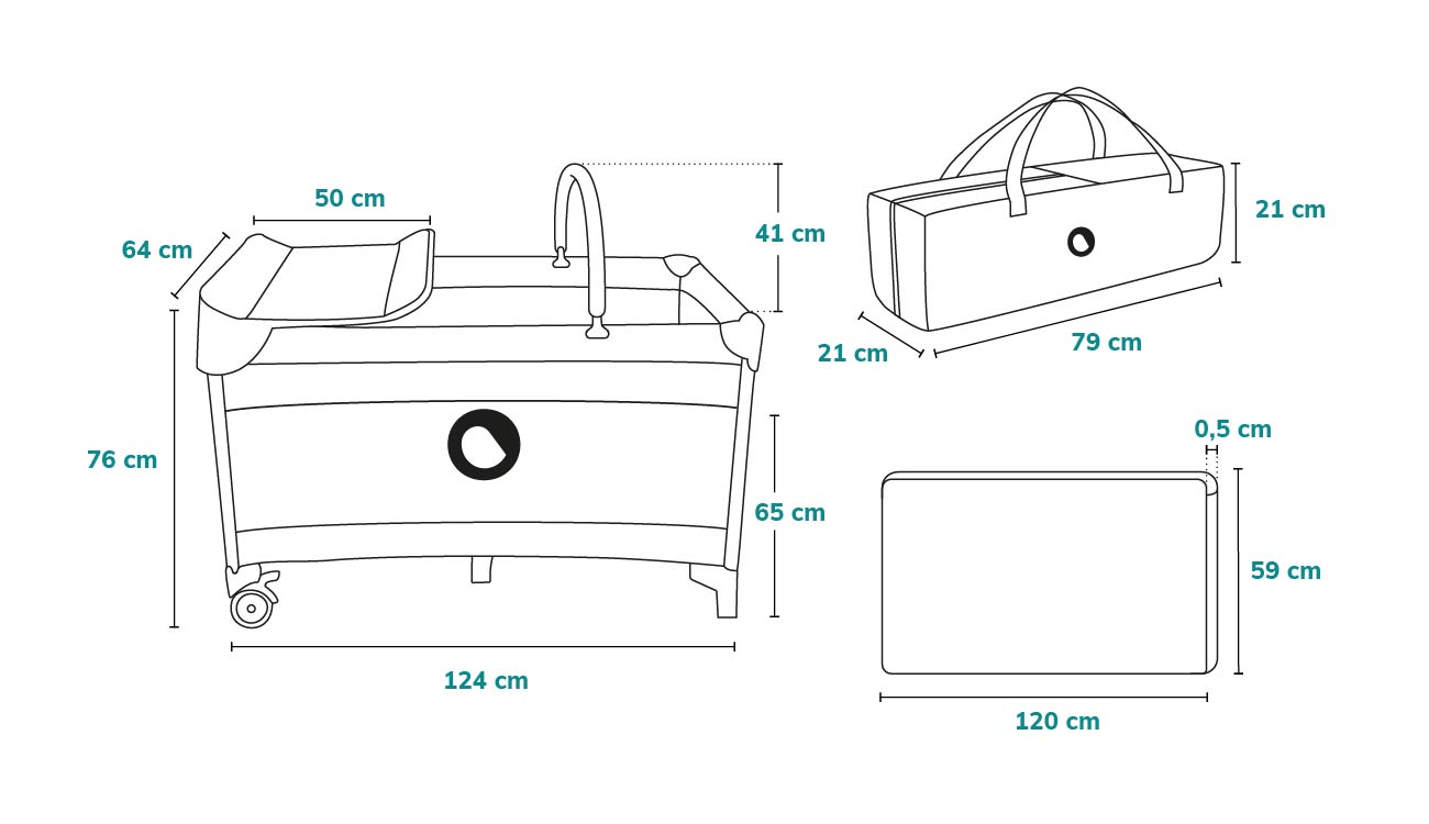 Оборудване: матрак, подложка за повиване, органайзер, гриф с играчки, чанта