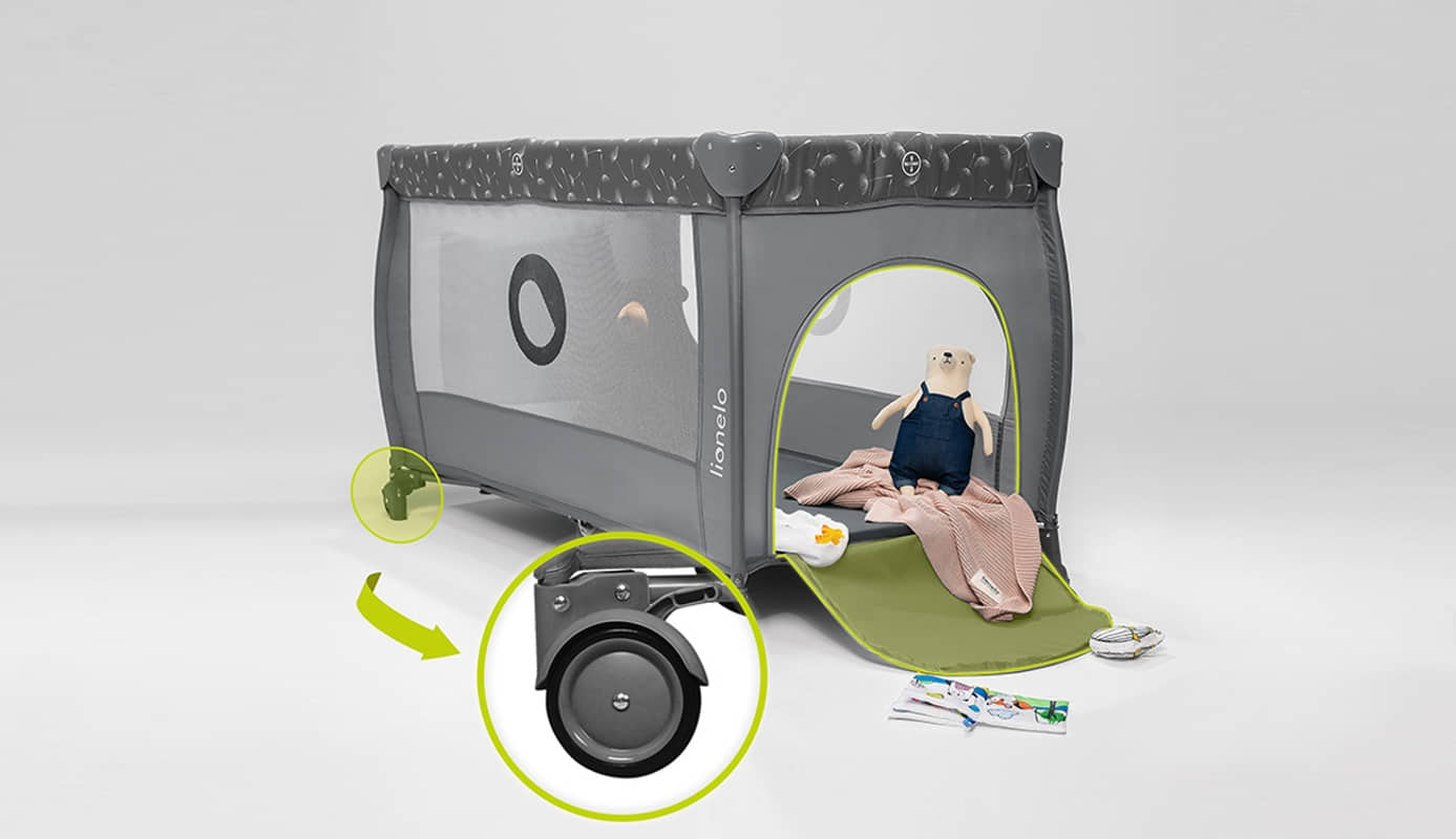Lionelo Stefi Plus – легло 2 в 1 е практично решение, което съчетава функциите на пътуващо легло и кошара за игра. Така тя създава уникално пространство за детето не само за почивка, но и за безгрижна игра под наблюдението на родителя. А най-хубавото е, че вашето бебе не трябва да се разделя с любимото си местенце – леглото се сгъва лесно и удобно, за да го вземете навсякъде със себе си.