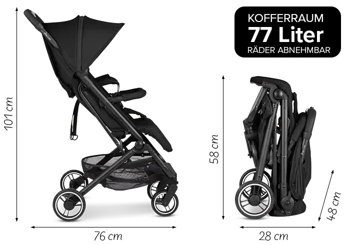 Благодарение на компактния си размер след сгъване, S One се побира в почти всеки багажник и дори може да се вземе в самолета като ръчен багаж. Вградената заключваща система за транспортиране гарантира, че количката остава стабилно сгъната по време на транспортиране.