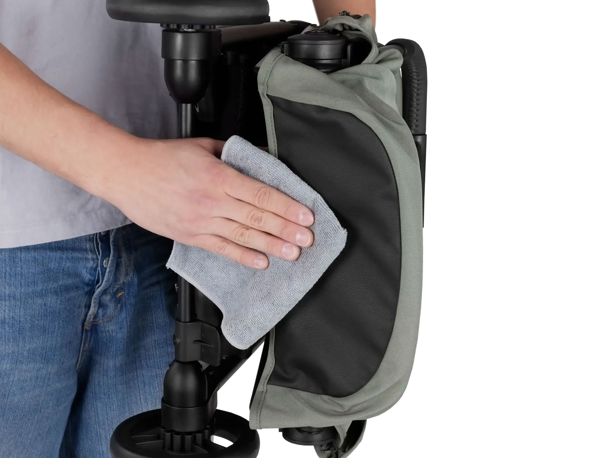 Вградената защита от замърсяване поддържа тапицерията на S One чиста, когато количката е сгъната. Така моделът остава винаги чист и изглежда добре.