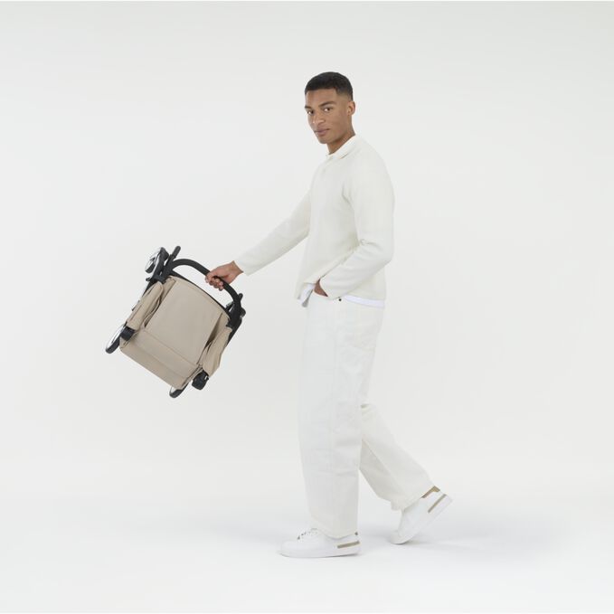Когато пространството е ограничено, просто натисни два бутона и сгъни Agis до размер, удобен за пътуване и пренасяне в самолет. След сгъване стои изправена сама, което прави съхранението лесно и удобно.