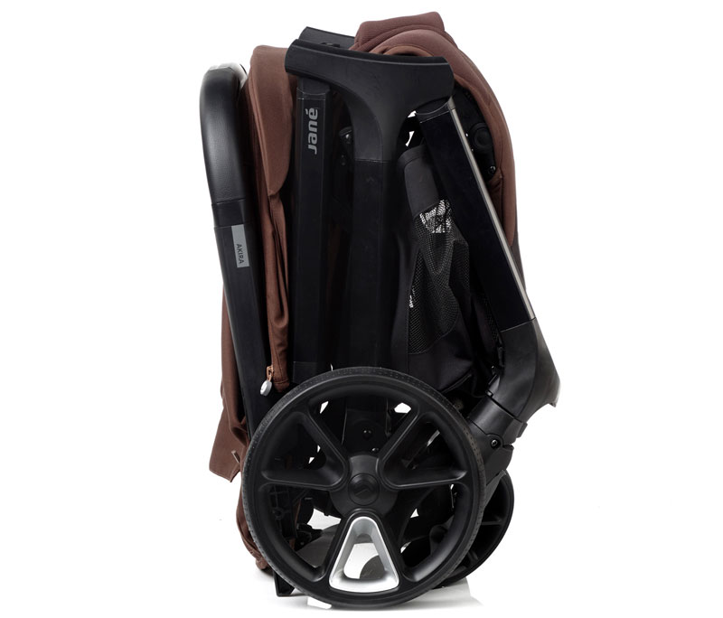 Автоматично сгъване с една ръка – количката стои изправена, когато е сгъната.