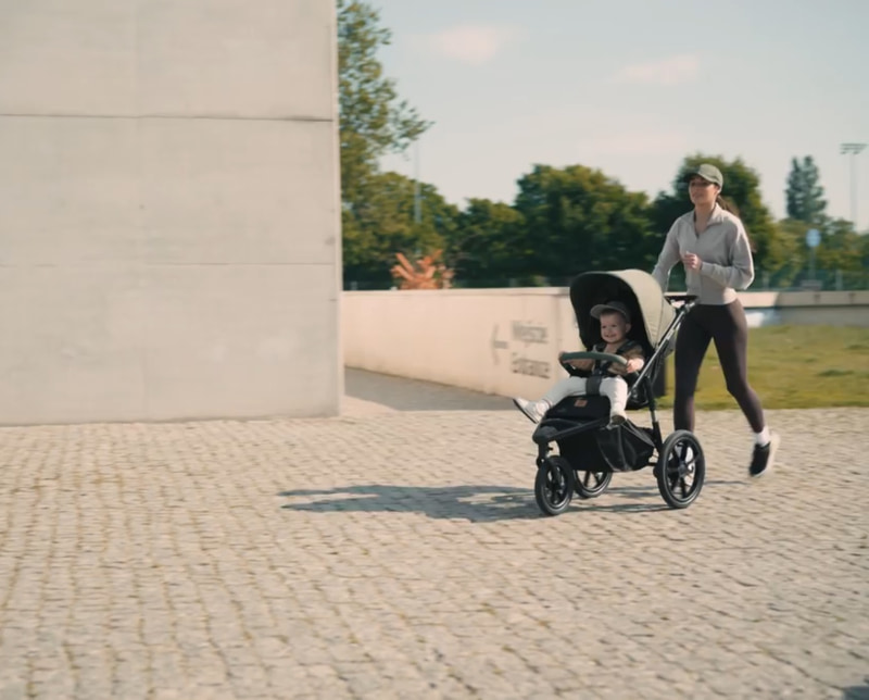 Ръчната кабелна спирачка значително улеснява спирането по време на спорт – винаги имате пълен контрол над количката. При стандартна разходка в града на помощ идва класическата крачна спирачка.