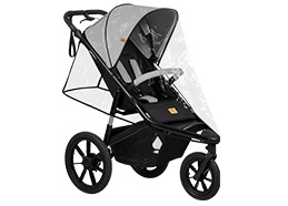Големият, водоустойчив сенник с UPF 50+ филтър предпазва вашето дете от променливите атмосферни условия.