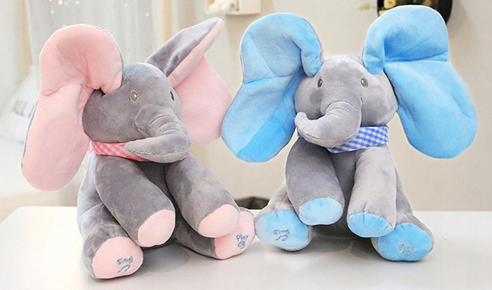 Това очарователно плюшено слонче е изключително сладко и мило, идеално за игра и успокоение. Със своите меки ушички и забавни функции, то бързо ще стане любим приятел на вашето дете.