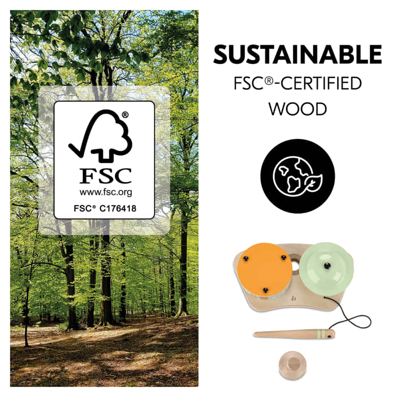 Обичате природата? И ние също. Затова Play Drums S е изработен от устойчиво FSC®-сертифицирано дърво и боядисан с водоразтворими бои. Можете да разчитате на това!