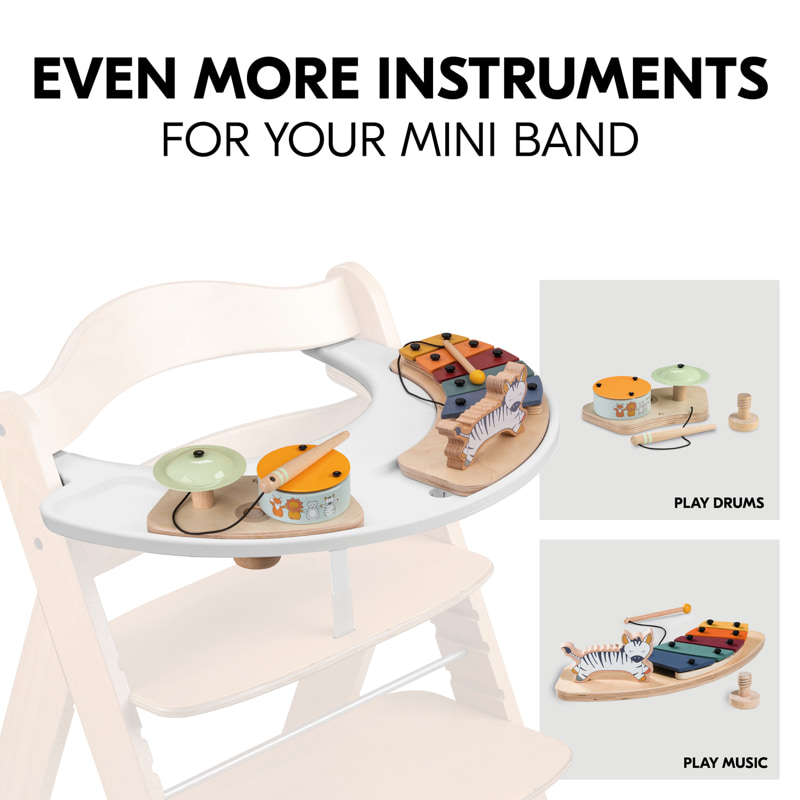 Един инструмент не е достатъчен за вашето музикално дете? Просто комбинирайте Play Drums S с детския инструмент Hauck Play Music – и музикалното парти започва!