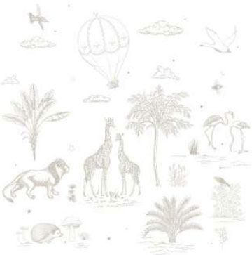 - Дизайн: щампа с животни и природни елементи в пастелни тонове