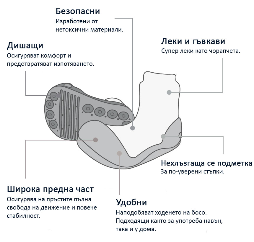 - Лесни за обуване – благодарение на меката горна част, обуването става бързо и лесно и освен това пасва на всяка форма на крачето.