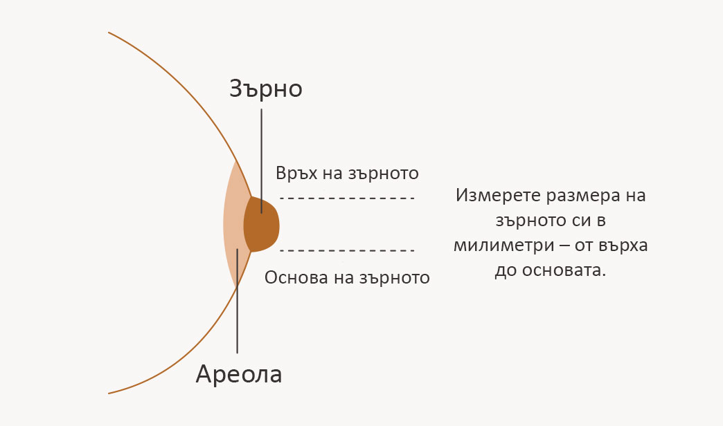 Важно е да знаете, че лявото и дясното зърно може да имат различни размери, затова измерете и двете, за да определите точния размер за всяка страна.