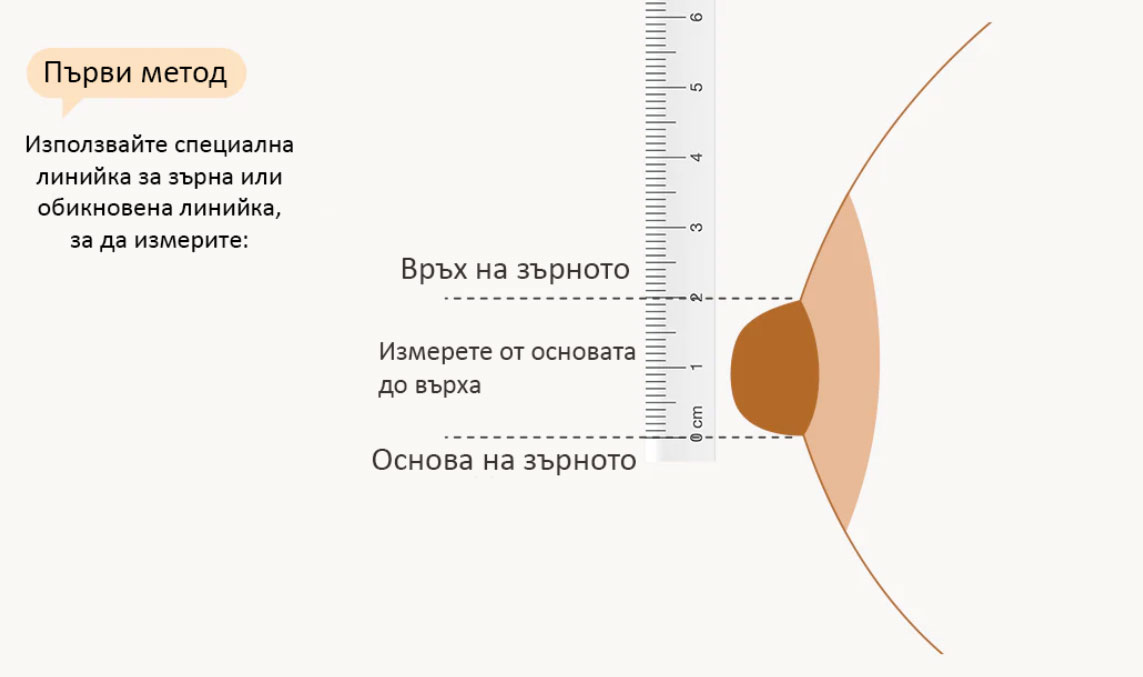 Стъпка 3: Измерете разстоянието от основата до върха на зърното в милиметри.