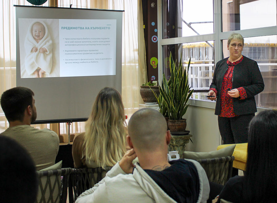 Д-р Елена Димитрова (Майчин дом, Варна) сподели полезни насоки за първите грижи за новороденото, включително кърмене, хранене и къпане.