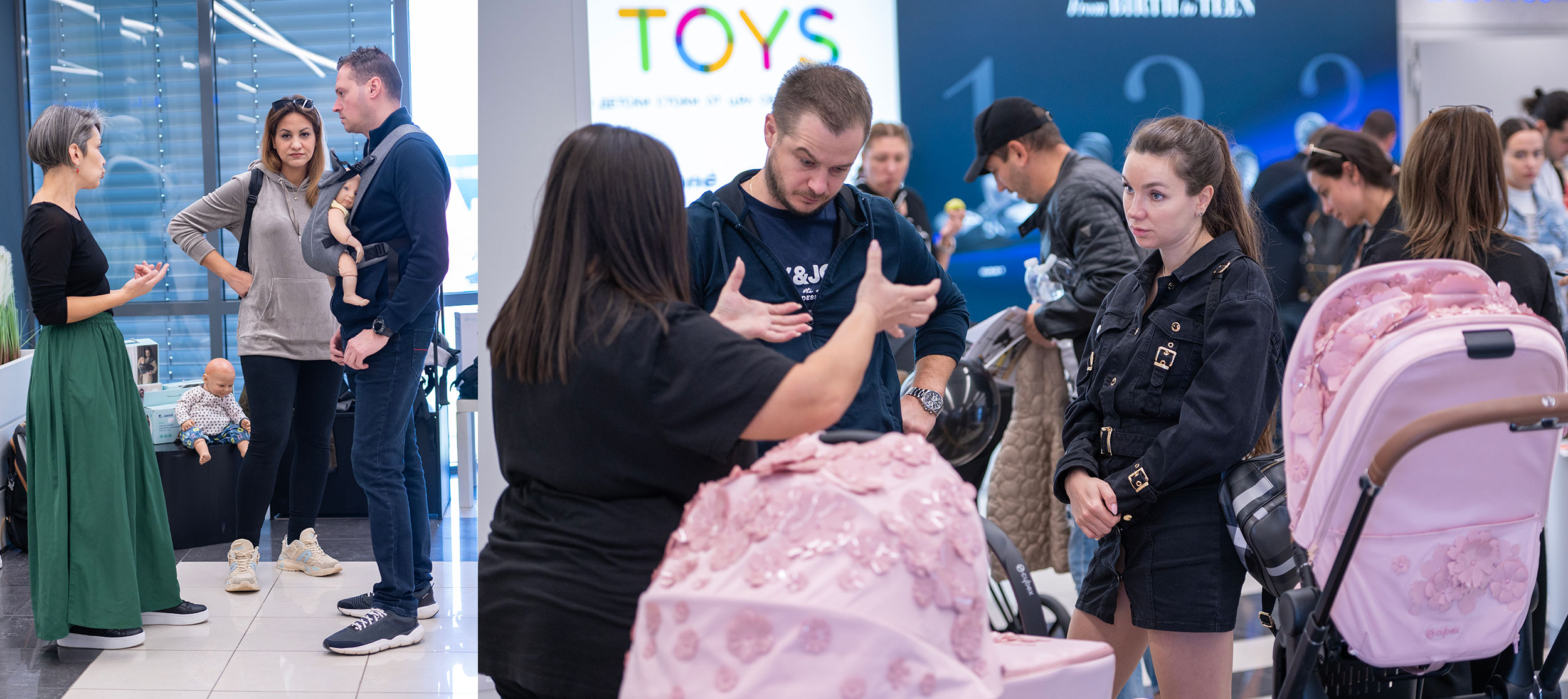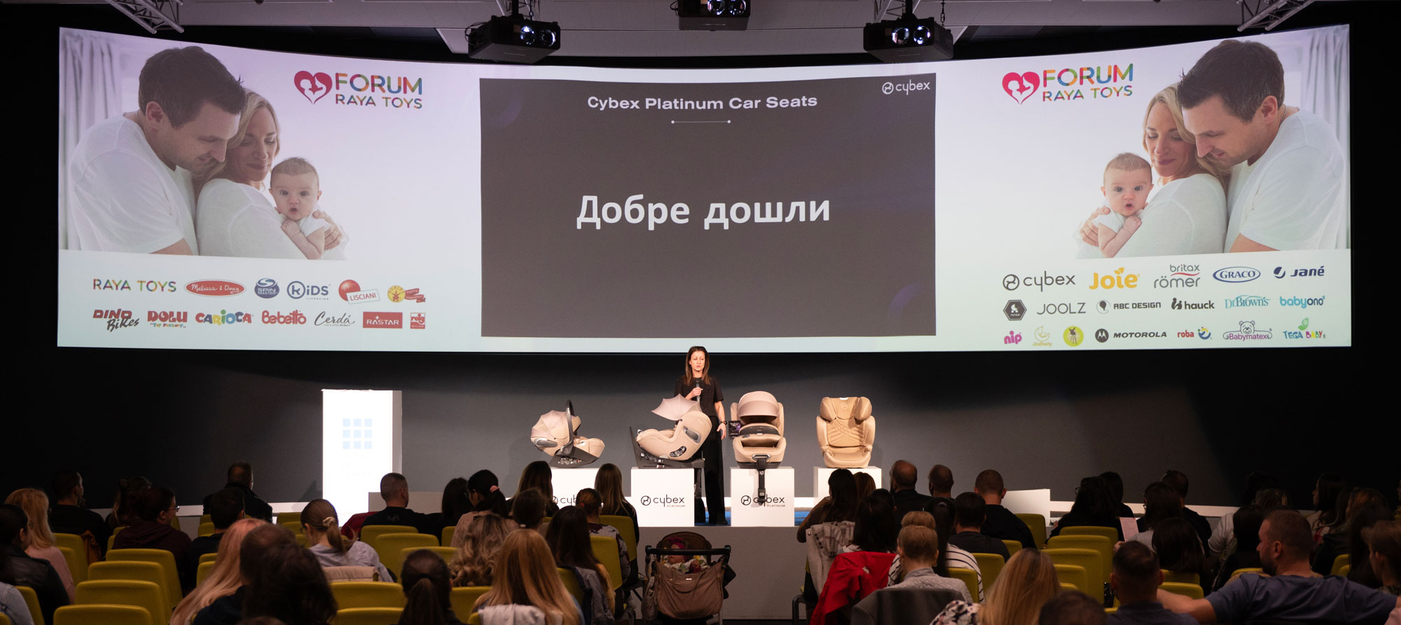 Във фоайето на форума гостите имаха възможност да разгледат продукти за майката и бебето от световноизвестни марки като Cybex, Britax Römer, Joie, Dr. Brown’s, BabyOno, и Nip. Екипът на Raya Toys беше на разположение за консултации и демонстрации, предоставяйки на родителите възможността да избират най-добрите решения за своето дете.