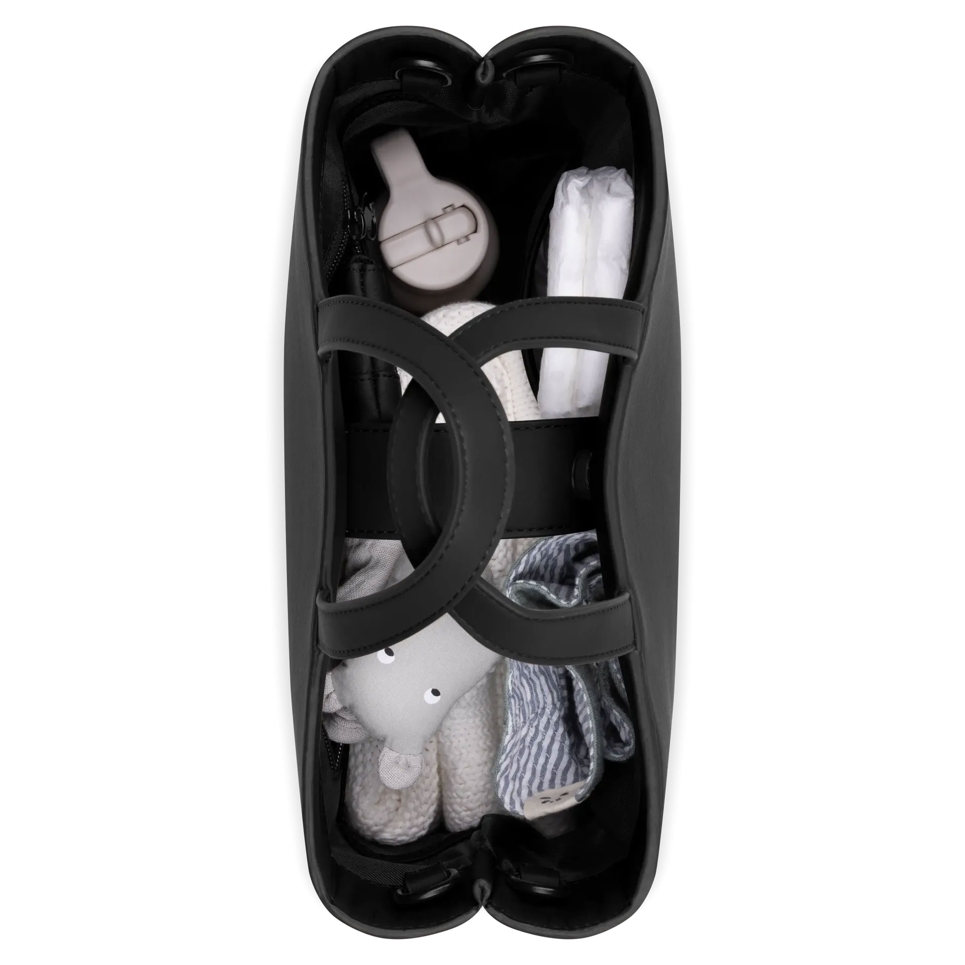 Трите големи отделения осигуряват място за всичко необходимо. Сложете пелени и мокри кърпички или лаптоп, тефтер и бутилка с вода. Гримове, яке или леки закуски също се побират без усилие. Винаги подредена и добре организирана – независимо къде сте!