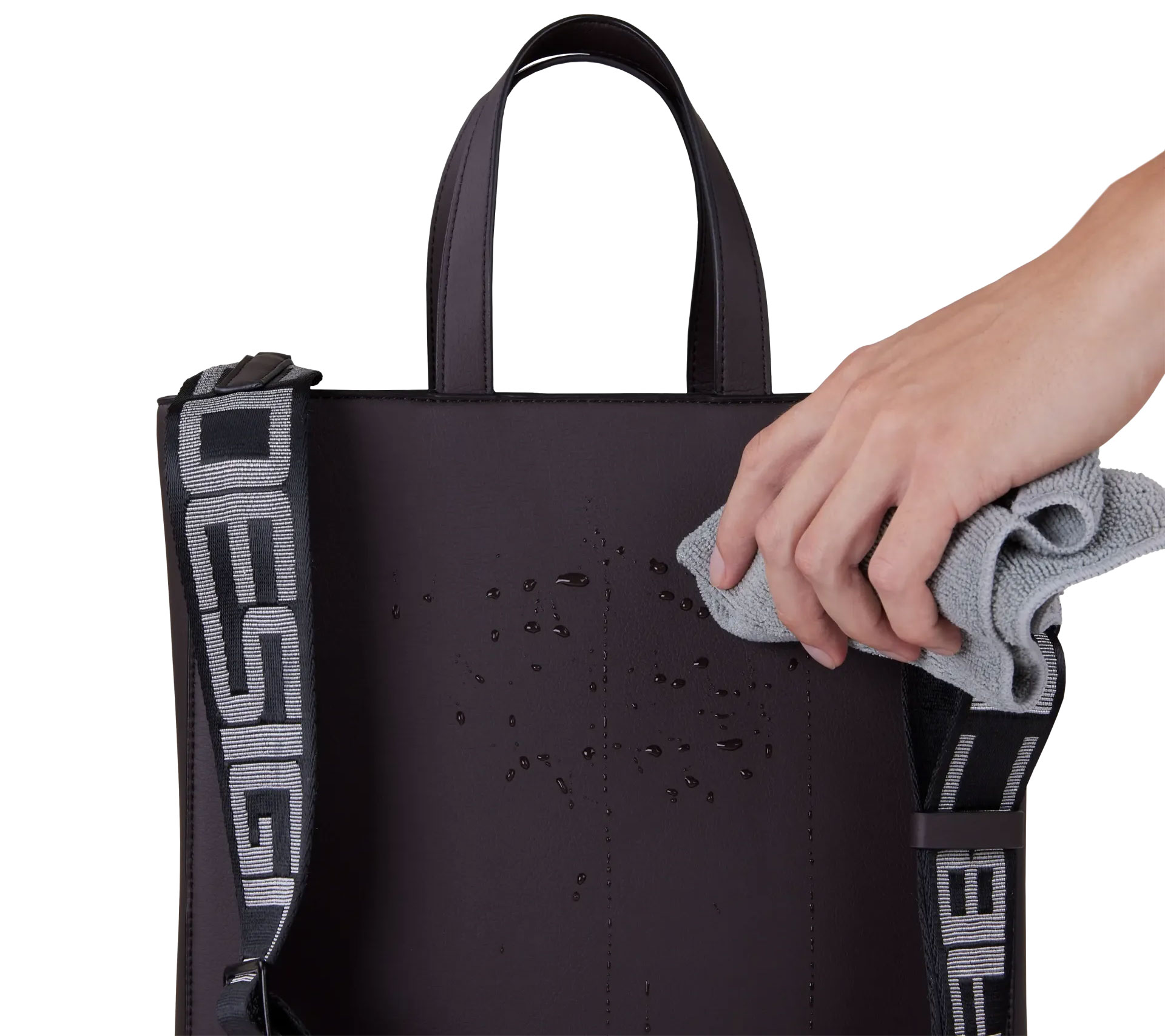 Daily Tote Bag е изработена от лесна за поддръжка веган кожа. Само едно забърсване и отново изглежда като нова! Така чантата ти винаги остава свежа и готова за нови приключения!