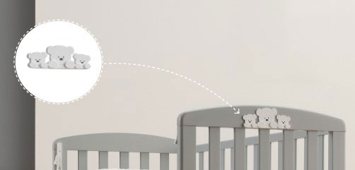 Очарователна декорация с мечета, подходяща за персонализиране на таблата на бебешко креватче B.Side. Монтира се лесно чрез здрава двойнозалепваща лента (включена).