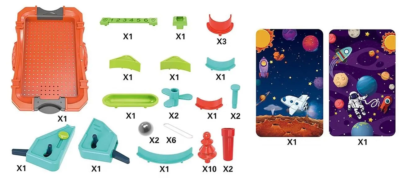 Сглобете игрално поле по ваше желание - в комплекта са включени две, от които можете да избирате. Заредете топче в дясната част и го изстреляйте като плъзнете зеления бутон нагоре. След това навигирайте топчето със специалните приспособления в долната част - можете да ги управлявате с плъзгачи от всяка страна. Целта ви е да приземите топчето в слот с голям брой точки и да не му позволявате да падне от игралното поле. Играчът, събрал най-висок брой точки, печели.