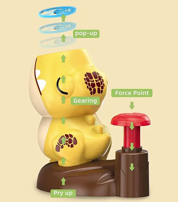 Заредете летящите дискове в гърлото на жабката, поставете включените предпазни очила и вземете една от специалните мрежи за улавяне. Първият играч натиска с крак бутонът в задната ѝ част, за да ги изстреля във въздуха (на височина до 7 метра), след което се втурва да улови възможно най-много дискове, преди те да са паднали на земята. Следва вторият играч. Състезавайте се кой ще събере повече дискове!