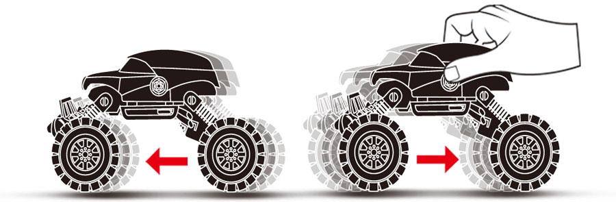 - Инерционен механизъм: Движи се без батерии – просто го издърпайте назад и го пуснете напред.