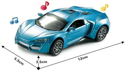 Снабден с pull back механизъм - когато движите колата назад с ръка по терен, след пускане тя започва да се движи напред.